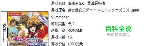 《游戏王GX 灵魂召唤》是《游戏王》系列登陆NDS平台的第二弹,动画《游戏王GX》中的十代、万丈目等人将首次在NDS上登场,在他们学园生活中,会遇到各种各样的精灵,这些精灵将在卡片对战中给予玩家极大的帮助。