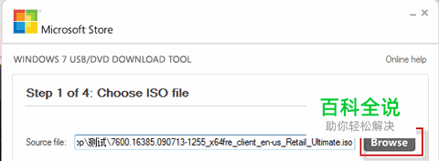 双击打开这个工具,点击浏览找到 Windows 7 的 ISO 文件,按 Next;