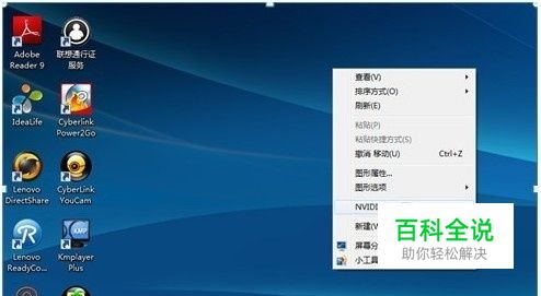 1、在桌面单击右键,在弹出的菜单上选择NVIDIA控制面板: