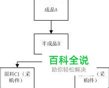 例:下图是一个简单的BOM,采购原料C1,C2;生产半成品B;然后半成品B再加工成品A。