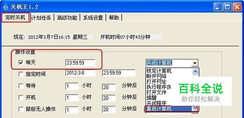 关机王定时关机软件远程开机 首先,对应的是关机王定时关机软件远程关机,怎么设置远程开机:一样的操作,下载,安装,勾选你的几个设置,时间,将操作步骤的选项“关闭计算机”改成“重启计算机”即可,这么简单就实现了远程开机。