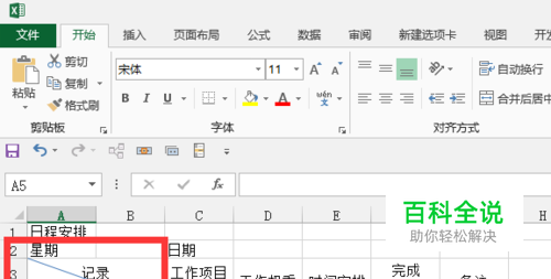 打开一个空白的Excel文档(小编使用的是excel2013),在sheet文档【重名名】--个人日程安排表,在第一个单元格【A1】写下【日程安排】,按照自己所需要展示的内容进行填写,如下图所示。