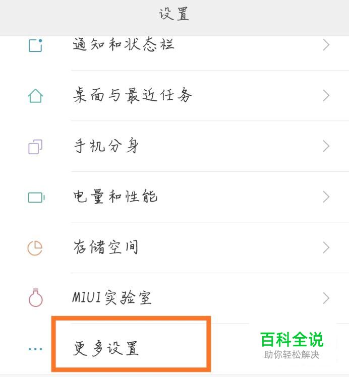 下拉界面,选择“更多设置”,点击进入。