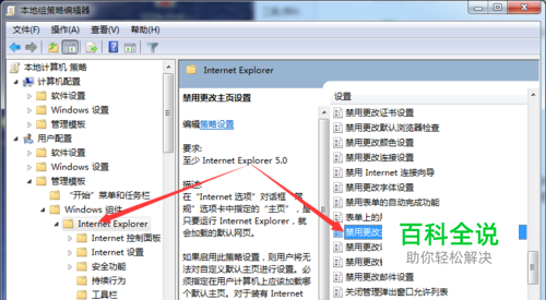 之后会弹出下图界面,在用户配置-----管理模版-----Windows组件-----Internet Explorer中找到禁止更改主页设置