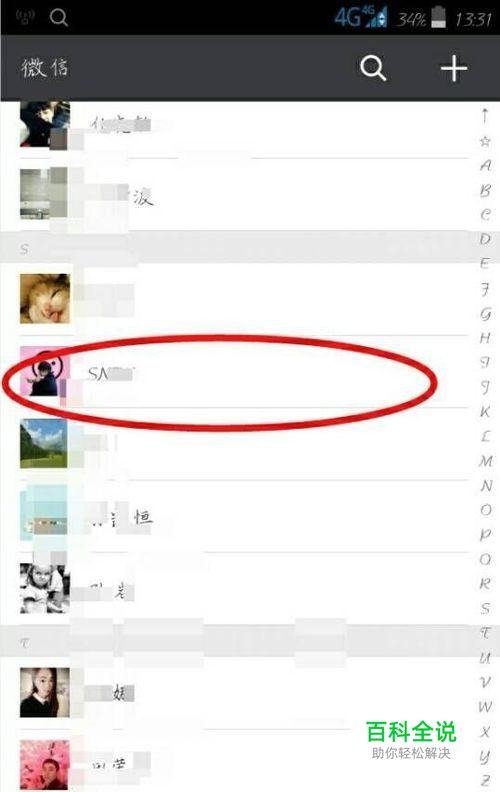 第一步:打开微信,登录你的微信号。然后,点到通讯录页面,选中你不想让她看到你动态的那个人。