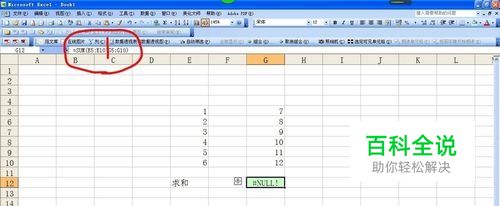 如图所示,计算e和g列的求和,输入公式后,点击回车却出现了#NULL!