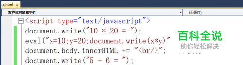 Eval函数在JavaScript脚步语言中的使用:新建一网页文件“a.html”,在文件中输入如图所示代码并保存,打开该网页文件使脚本运行,则输入结果如图。