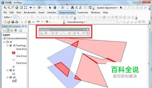 看自己的Arcmap有没有加载topology工具,如果没有的话右击空白处,添加topology工具。