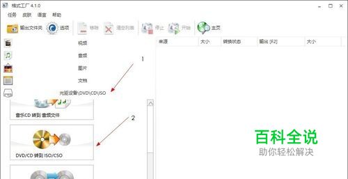 2、(1)点击“光驱设备/DVD/CD/ISO”; (2)点击“DVD/CD转到ISO/CSO”。