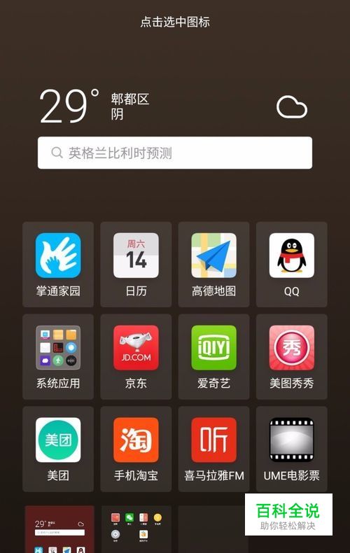 点击第一个快捷键整理图标,下方就会出现几个手机桌面的略缩图。