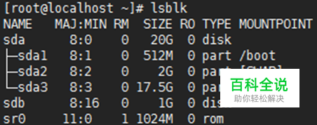 模拟事故现场——创建一个新分区并挂载 在Vmware中新增一块硬盘,开机后通过lsblk查看一下(sdb)。