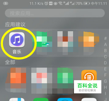 打开自己的手机,在手机桌面上找到音乐这个小程序并点击打开。
