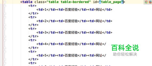 首先我们在html里添加一个table,显示列出table的数据,要注意的是这个table里不需要添加表头。直接就是表数据。