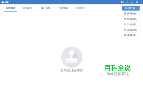 进入审批功能界面后,点击右上角的“新建申请”