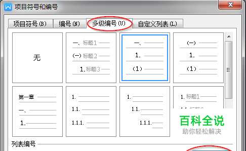 第一级——第1章;第二级——1;第三级——(1),而预设编号里没有。这时候就要用到自定义编号了。
