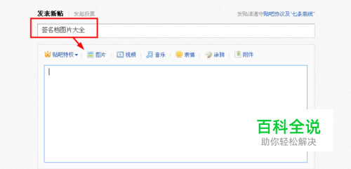 把网页拉到最底部可以发帖的位置,然后在标题中输入“签名档大全”---“图片”