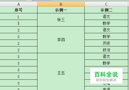 单击执行,excel将执行自动合并单元格。