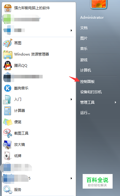 打开电脑左下角的开始菜单,然后在后边列表中找到控制面板选项。点击进入