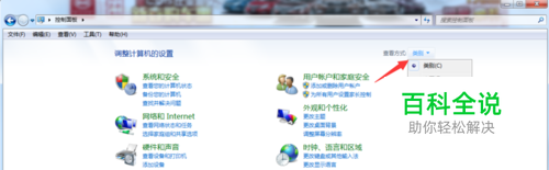 进入控制面板主界面之后,我们 点击右上角的查看 方式,然后在下拉菜单中选择小图标;