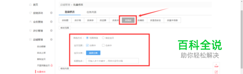 点击批量修改里面的“改描述”,然后选择需要设置的宝贝。