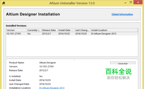 运行AltiumUninstaller.exe程序,点击uninstall即可进行正常的卸载。