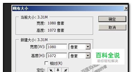 在对话框这里显示着当前画布的大小尺寸; 中间位置有一个“相对”的选项,我们在前面小方框上点一下,打上对勾。