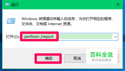 使用Windows10系统自带程序软件检测电脑的方法 检查系统健康度 右键点击系统桌面左下角的【开始】,在开始菜单中点击【运行】,在运行对话框中输入:perfmon /report,点击确定或者回车;