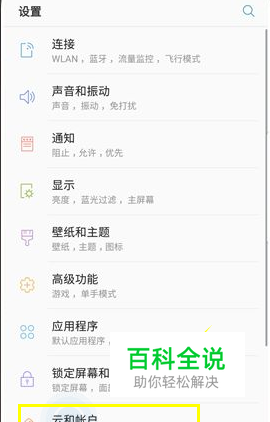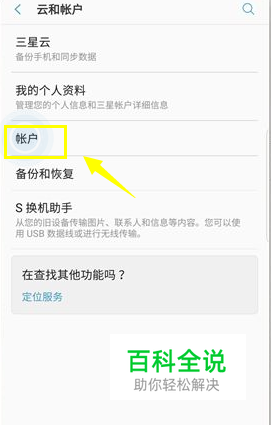 进入设置列表下拉点击云和账户选项进入,如下图所示
