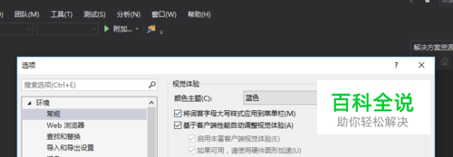 在环境---常规---颜色主题,在其旁边选择自己喜欢的皮肤颜色。选择完成后点击下面的确定按钮。就会实现效果。