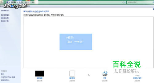 桌面上右键单击,然后点击个性化,然后点击显示按钮。