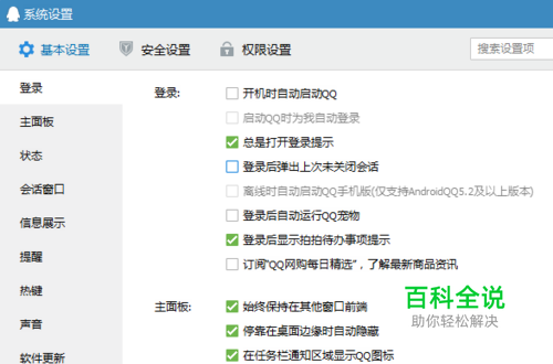 打开对话框,有很多设置,基本设置,安全设置,权限设置,如图所示