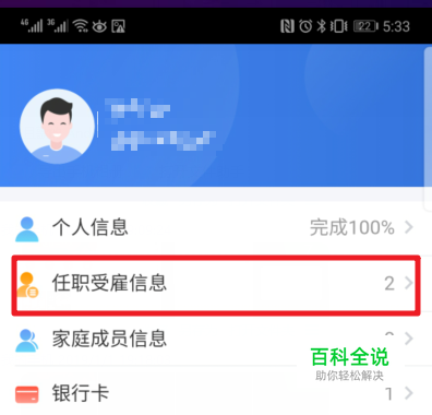 登录成功后,在个人中心就可以看到任职受雇信息的选项,我们点击进入。