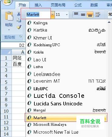在字体下拉菜单中选择”Marlett“或者直接键入”Marlett“,点击”Enter“键,变换字体。
