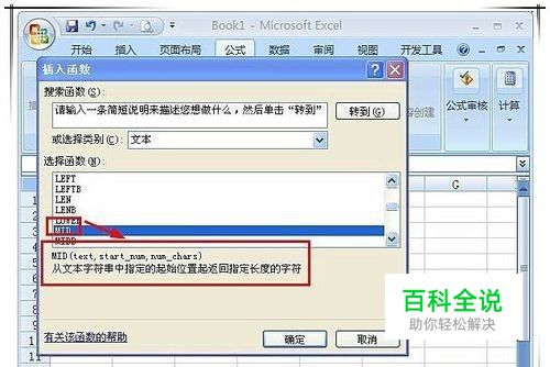 MID函数的基本用法 MID函数的格式是:MID(text, start_num, num_chars) 功能:是从text所示的字符串中,从左边开始数,第start_num个位置开始,截取num_chars个的字符。