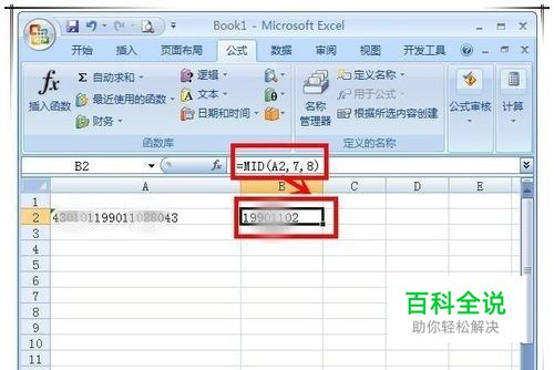 MID函数最常用于从身份证中提取出生日期,如下图所示,我们知道,只要从A2单元格中的身份证号中的第7位开始,截图8个字符,得到的就是我们需要的出生日期,那么我们可以这样使用MID函数: =MID(A2,7,8)
