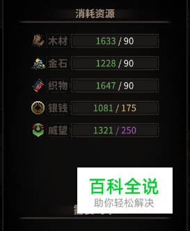 在建造祠堂之前我们还需要准备一下修建祠堂用到的材料,90木材,90金石,90织物,175金钱,250声望。