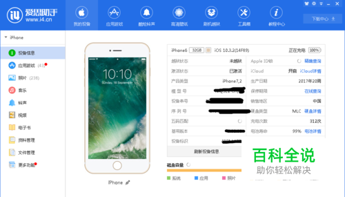 这款助手功能很强大,第一次连接需要手机同时安装助手。连接成功后可以查看手机的信息状态(激活、生产日期等)