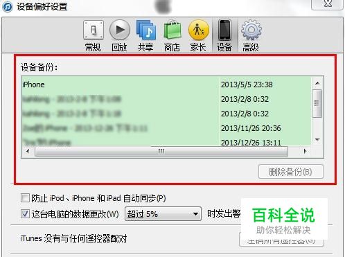 在偏好设置窗口中可以看到一列曾经连接过的iPhone的设备。