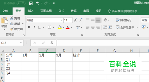 打开自己的excel,在表格单元格A1输入公司,B1输入1月等信息。