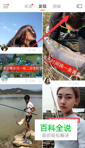 打开快手APP,点击界面右上角录制按钮。