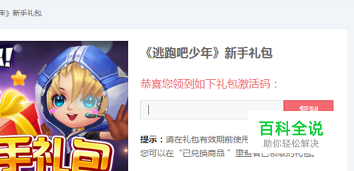 先把礼包的激活码复制下来,然后前往游戏里面进行兑换,如图所示