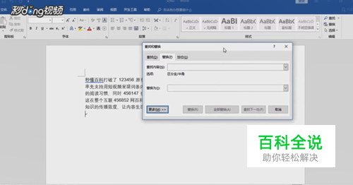 打开word文档,输入一些内容和数字,然后找到开始中的替换按钮,点击。