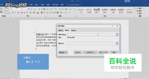 出现替换对话框中,在查找中输入【^#】,替换为中用鼠标点一下。