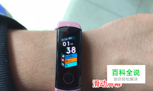 我们点击自己的荣耀手环4触摸键将屏幕点亮,点亮屏幕后我们向下滑动,调节手环的功能菜单。