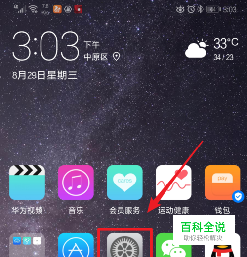 我们打开自己手上的华为P20手机,解锁后进入主界面,找到“设置”图标,点击进入。
