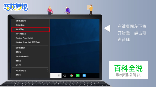 首先我们需要找到“磁盘管理”,右键单击桌面左下角开始键。