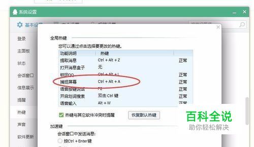 登录qq,设置捕捉屏幕热键Ctrl+Alt+A