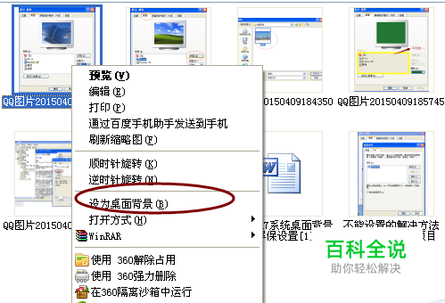 无论是WIN7系统还是XP系统,设置桌面背景图片最简单的一个方法就是,找到想要设置成桌面背景的图片,然后在图片上鼠标单击右键选中“设为桌面背景”即可。