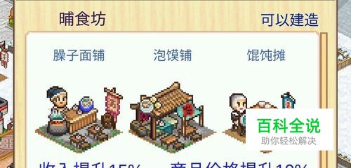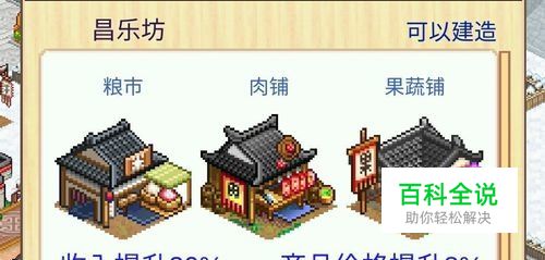 1、哺食坊:臊子面铺、泡馍铺、馄饨摊。收入提升15%,商品价格提升10% 2、望花坊:粽子铺、迎客松、池塘 3、朝食坊:饼铺、胡麻粥铺、粽子铺 4、悠然坊:茗铺、粮行、木槿 5、西域坊:菩萨像、饼铺、牡丹花