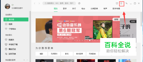 点击qq音乐右上角的三根横线,如下图所示